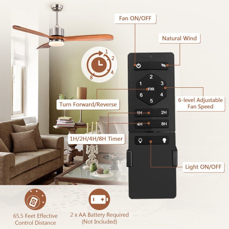 Home > 52 Inch Reversible Ceiling Fan with LED Light and Adjustable Temperature
