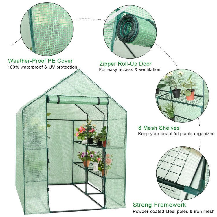 Home > 8 shelves Mini Walk In Greenhouse Outdoor Gardening Plant Green House
