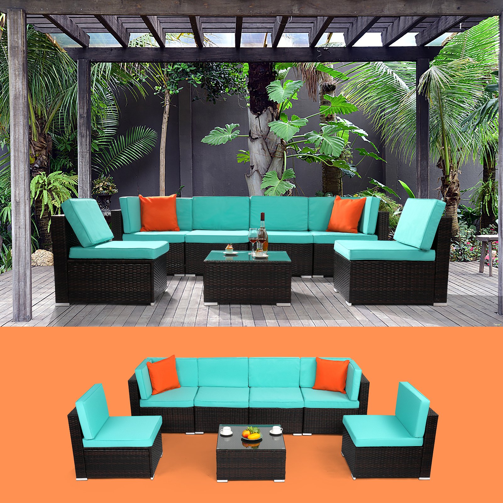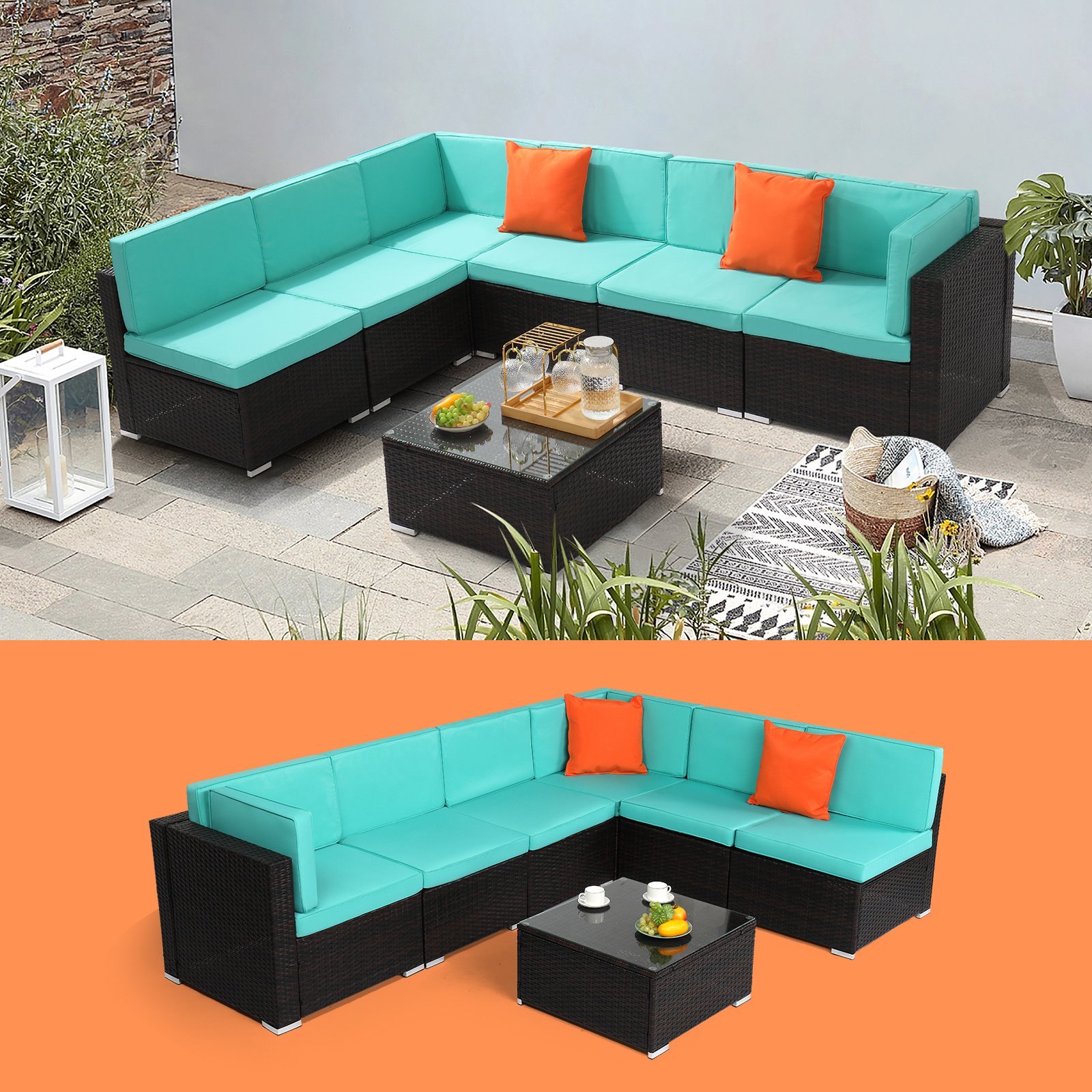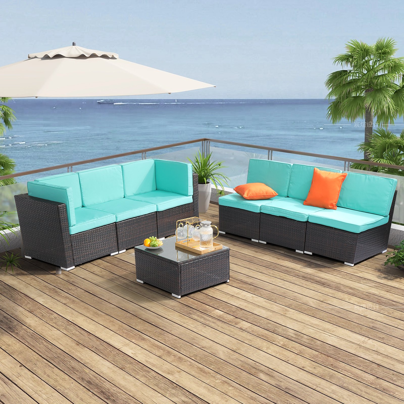 Home > Brown Gradient Rattan Lake Blue Cushion Cushion Vacuum Packing Rattan 7 Piece Set