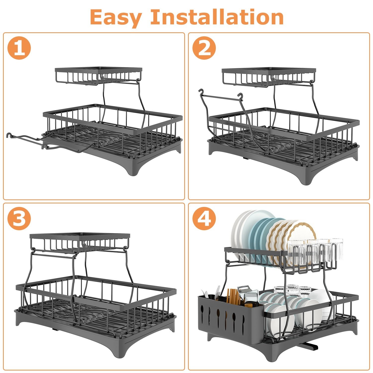 Home > Dish Drying Rack with Drainboard Detachable 2-Tier Dish Rack Drainer Organizer Set with Utensil Holder Cup Rack Swivel Spout for Kitchen Counter