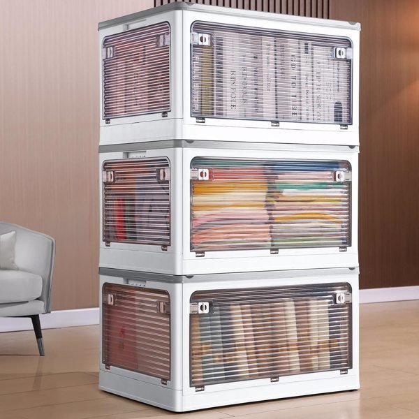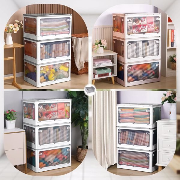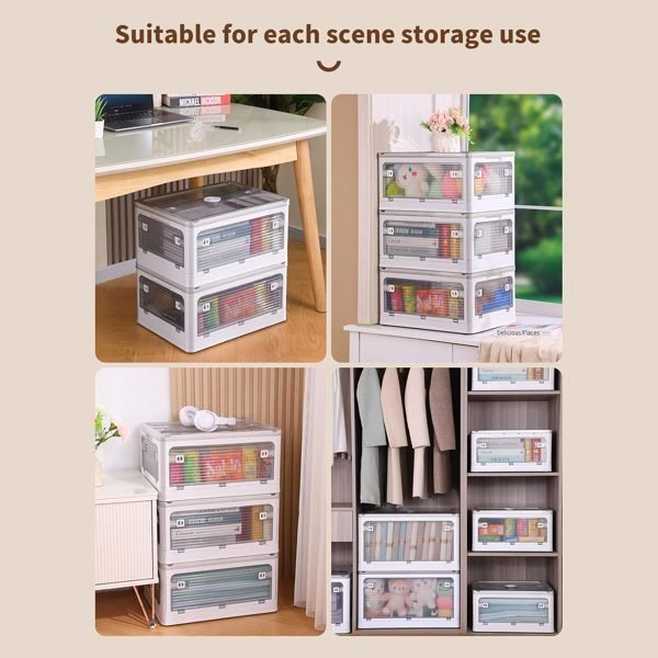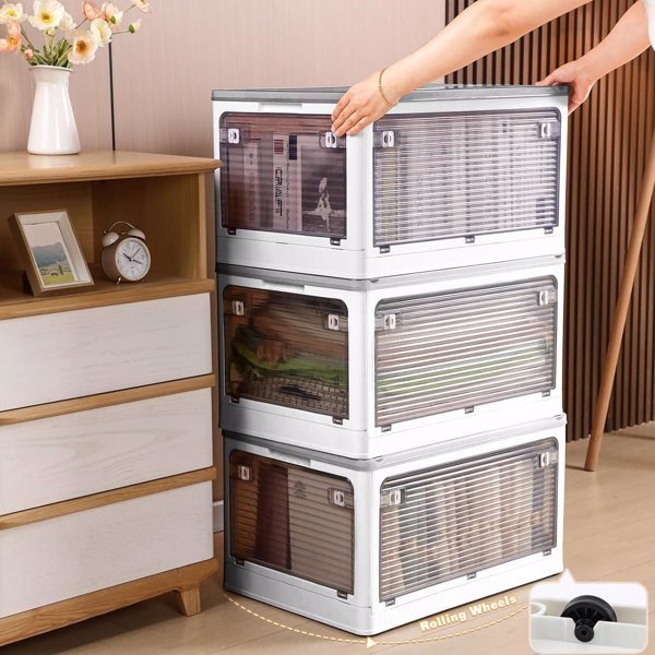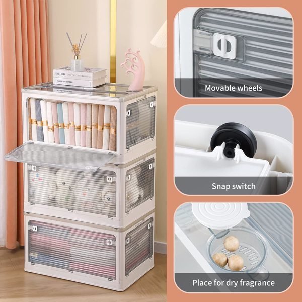 The size is measured manually, it is normal to have an error of 1-2 cmFolded Design:The plastic storage bin can be folded when not in use. For easy storage. Perfect for organizing the kitchen, bathroom, break room, lunchroom, classroom, kid's playroom, closet, baby nursery.Transparent:The clear plastic box is made out of clear plastic, and you can see what's inside. Clear design theory aims at powerful convenience. The transparent container is durable and made of high-quality PP materials with no odor and no harm to the body.Modular Design:The plastic storage stacking and modular design for best use of space. and with handles, pick them up & carry them.With Insect-Proof Aromatherapy BoxSolve the troubles caused by mosquitoes eroding clothes.Pulleys At The Bottom:Easy to move even with heavy item.Multiple Choices:Three sizes and three colors for you to choose from, allowing you to freely choose. It is convenient for you to complete the storage to a greater extent.Fast Shipping From USA, Delivered In 3-7 Business Days