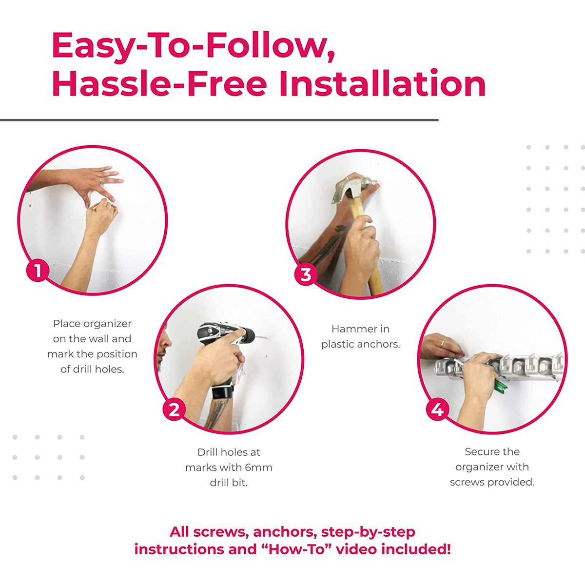 Thanks to its compact and versatile design; our broom and tool rack can easily fit even in the tiniest rooms to maximize their storage capacity without taking up any of the floor space. Use it for your kitchen; bathroom; utility room; laundry room; closet; garage; office or even on any outdoor wall of your house; to eliminate clutter and keep everything neatly in place.
