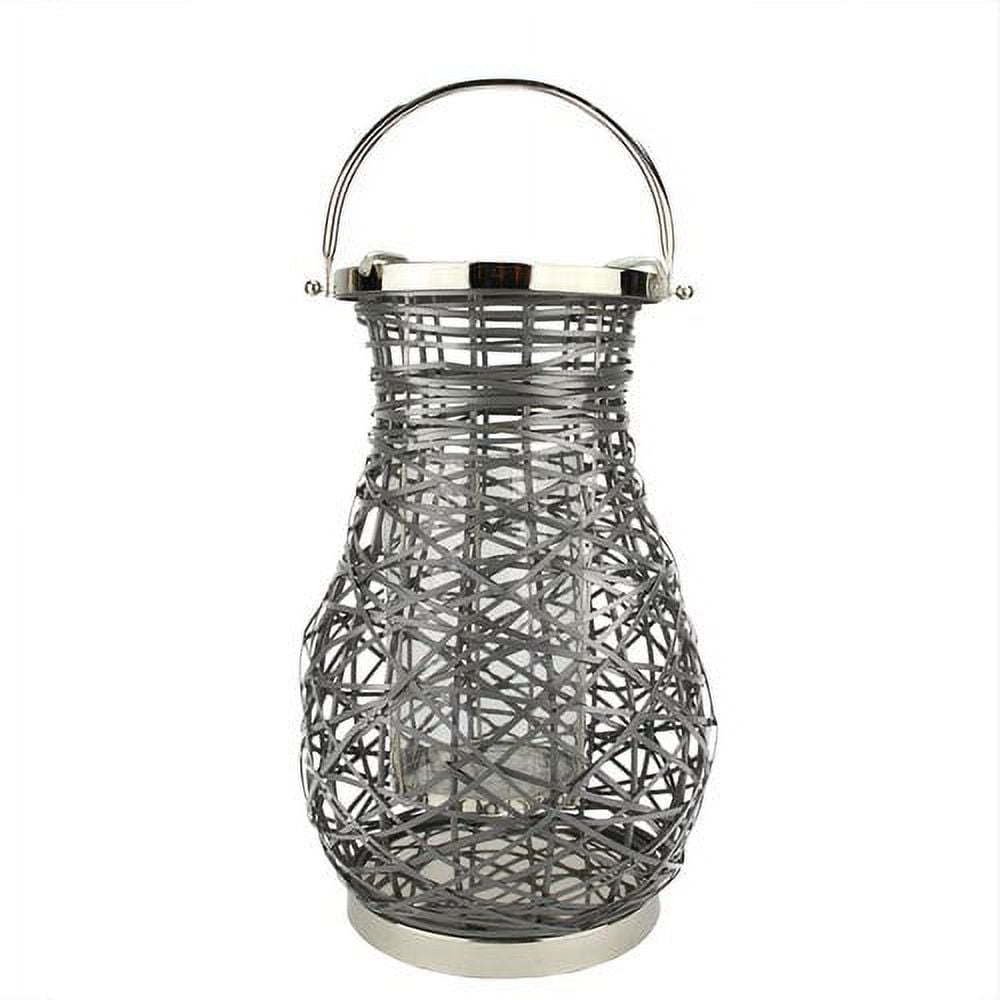 Light, fresh and airy, this candle lantern is sure to add style to any decor. Orange woven iron and nickel finish handle gives this unique lantern a modern feel. Features a mirrored base and suspended hurricane inside of the lantern. Holds (1) pillar candle - not included. Can be carried, hung from a ceiling or used on a sturdy table top. Recommended for indoor use - if using outdoors place under a covered area. Dimensions: 18.5" high x 11" diameter. Material(s): iron/metal/glass