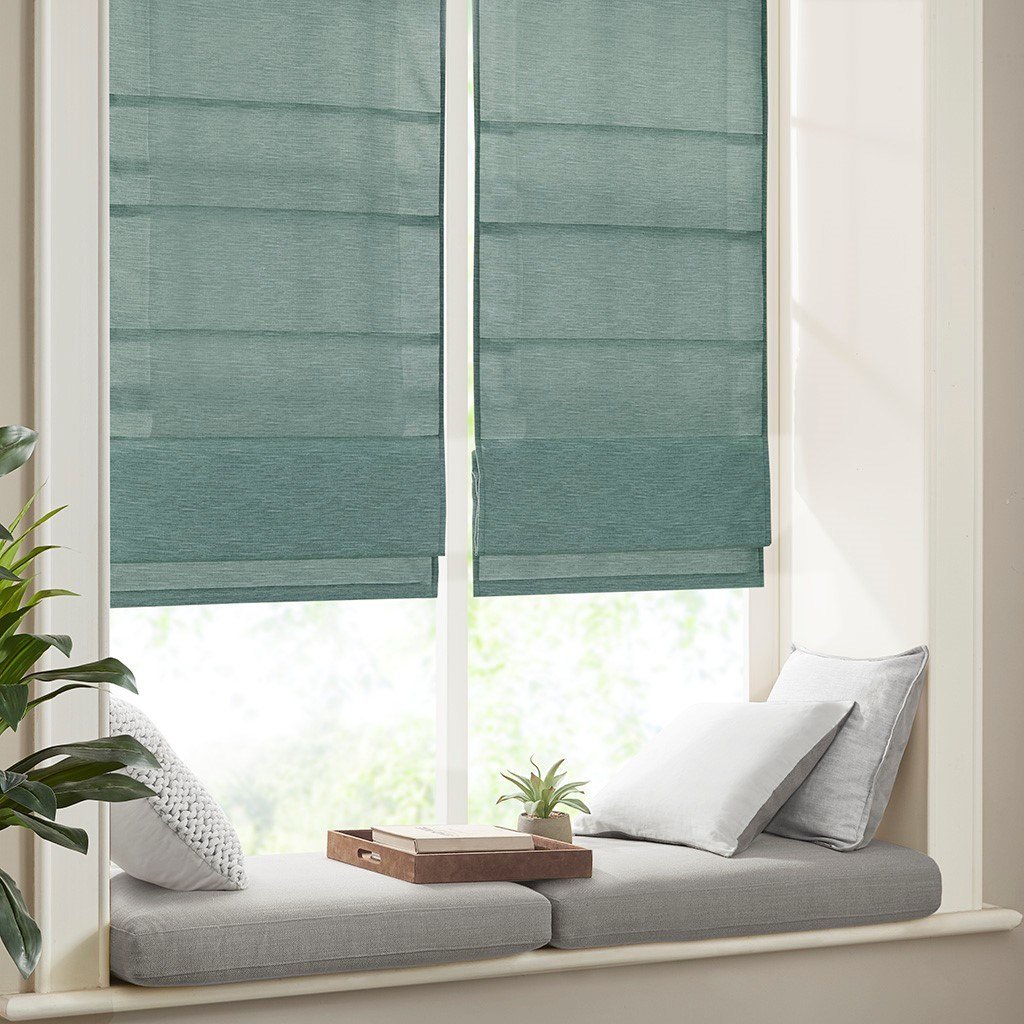 DescriptionOur Madison Park Como Printed Faux Silk Room Darkening Cordless Roman Shade offers a modern and convenient update to your home decor. This roman shade flaunts a soft hue faux silk textured fabric to create a stylish and beautiful, look and feel. Also achieving the OEKO-TEX certification, these curtains do not contain any harmful substances or chemicals ensuring quality comfort and wellness. A thermal foambacking on the reverse provides energy efficiency and a room darkening effect, for enhanced privacy. The cordless retraction mechanism makes the room darkening shade easy to open and close the throughout the day, while the detachable fabric face allows for easier assembly and cleaning by lightly shaking or dusting. Please note: The top face fabric is detachable from the hook and loop fastener, but is NOT fully removable. Ready to install right out of the packaging, this roman shade can be hung inside or above the window pane allowing you to find the perfect fit for your home decor. Shade measures 64-inches long and comes in 5 width options to suit multiple standard window sizes. Each roman shade is sold as a single and comes with a printed instructional guide as well as an instructional video available on site. Assembly is required.Product Details27x64"1 Roman Shade:27"W x 64"LSlat Depth - Front to back:1.5"Recommended Mounting Depth:3"Head Rail:27"W x 1.5"D x 2.5"HMaterialFace: 100% polyester; Flocking: 100% Rayon