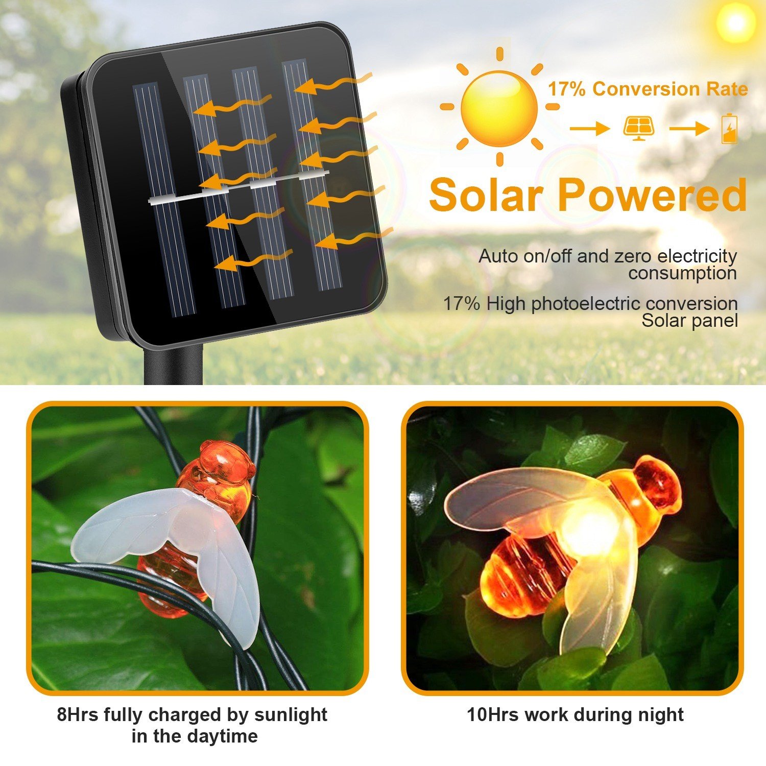**DURABLE & WIDE APPLICATIONS*:Adopt PC and copper wire materials,low-heat-emission and durable. Easy installation and bee shaped design is widely applicable to decorate yard,garden,fence and lawn,tree etc..