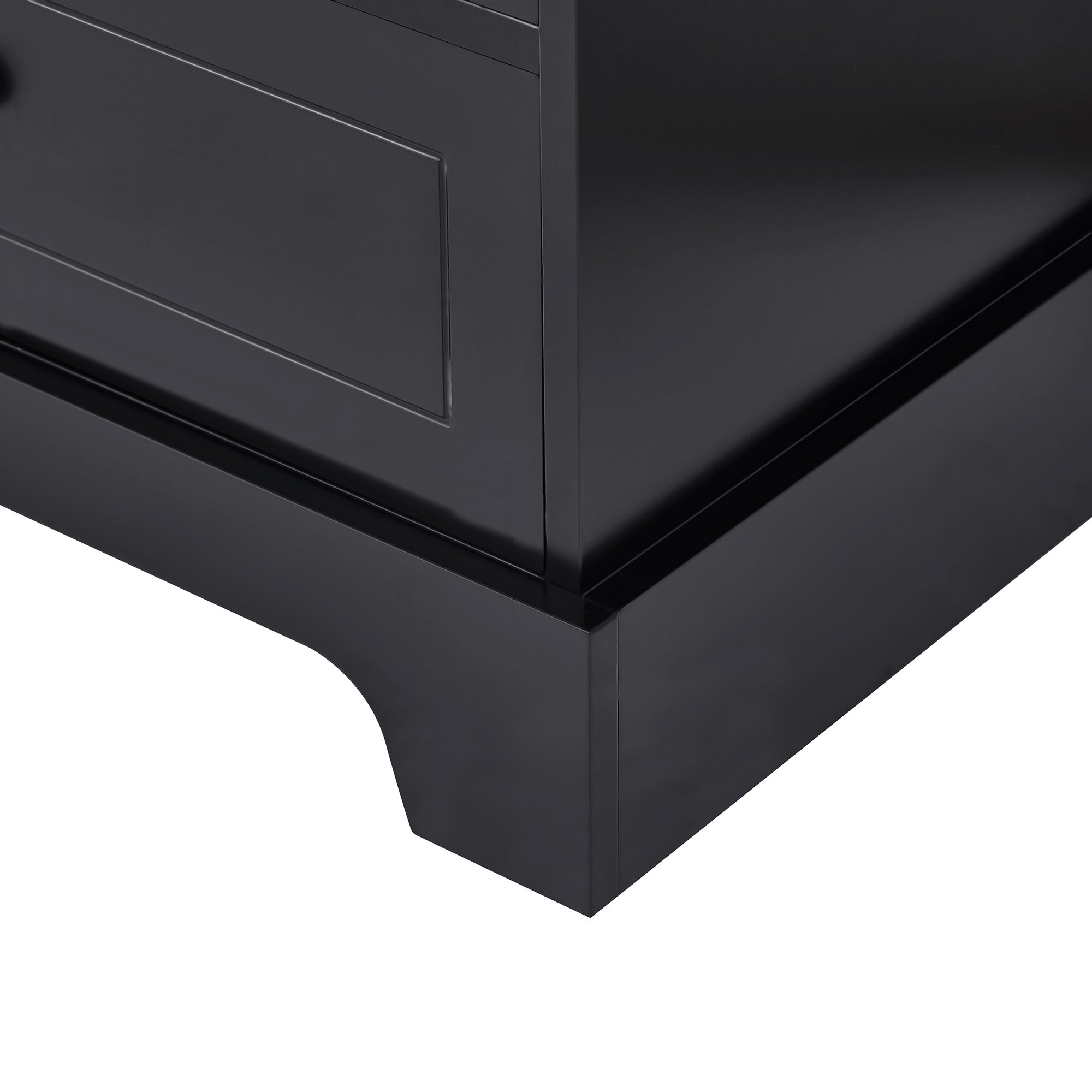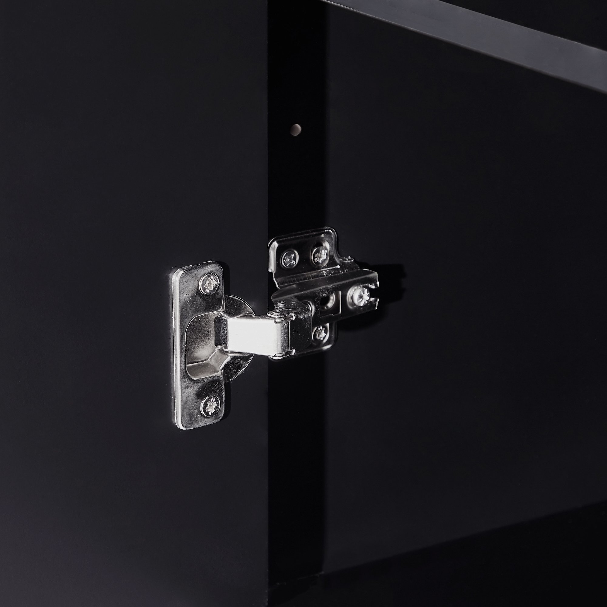 3.Selected Material: The main structure of this cabinet is made of high quality MDF board to ensure the stability and durability. The smooth finish is water-proof and makes the daily clean easy. Black round metal handles and stainless steel hinges achieve no noisy when closing the door and drawer. The stainless steel slide rails ensure the smooth using experience.