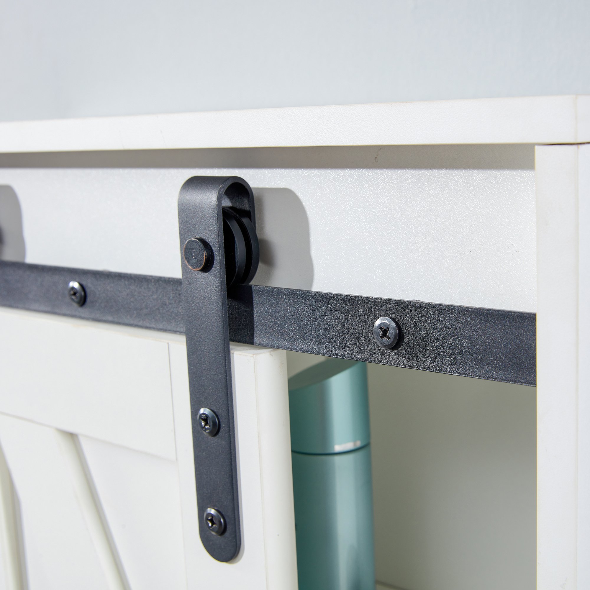 4.[Elegant Details]- The cabinet is made of MDF and metal, and it is divided into 5 spaces with 3 heights available to store the right amount of items accordingly. The sliding door design does not pinch your hand and reduces damage to the door from opening and closing.