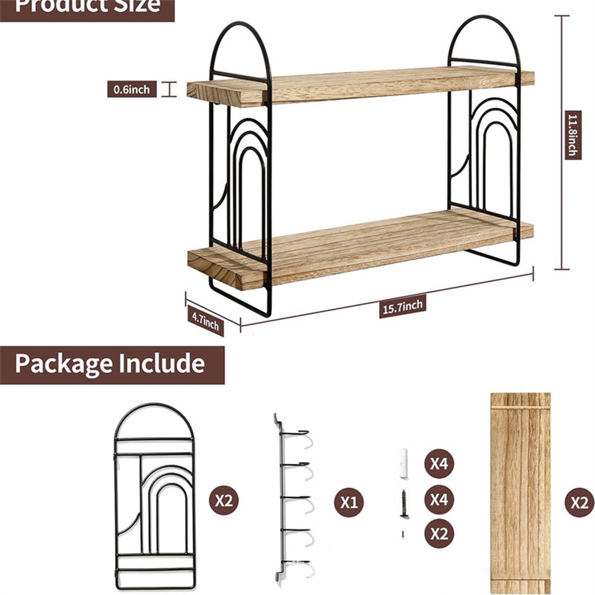 Home > Wooden Double Bathroom Toiletries Organiser Wall Mounted Kitchen Mug Coffee Rack Ironwood Living Room Decorative Shelf